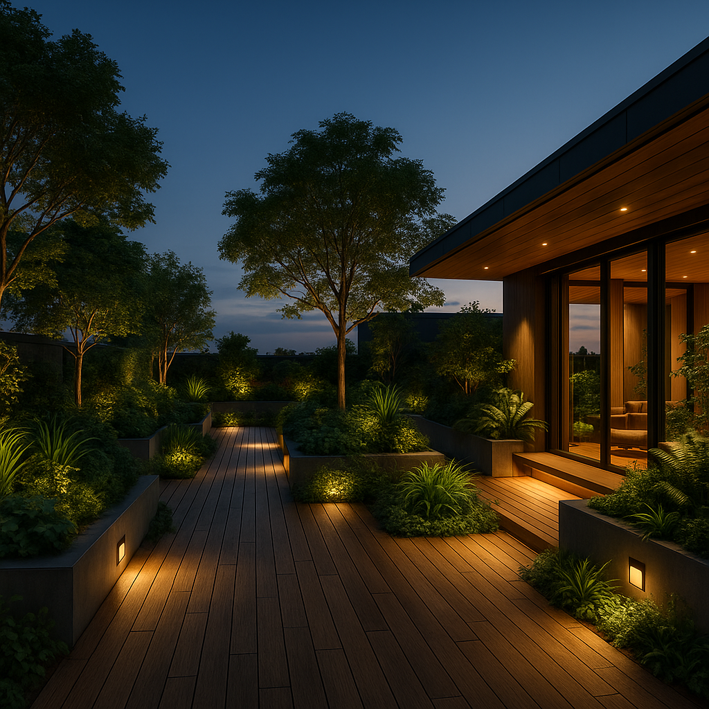 - Premium outdoor tiles and wooden decks