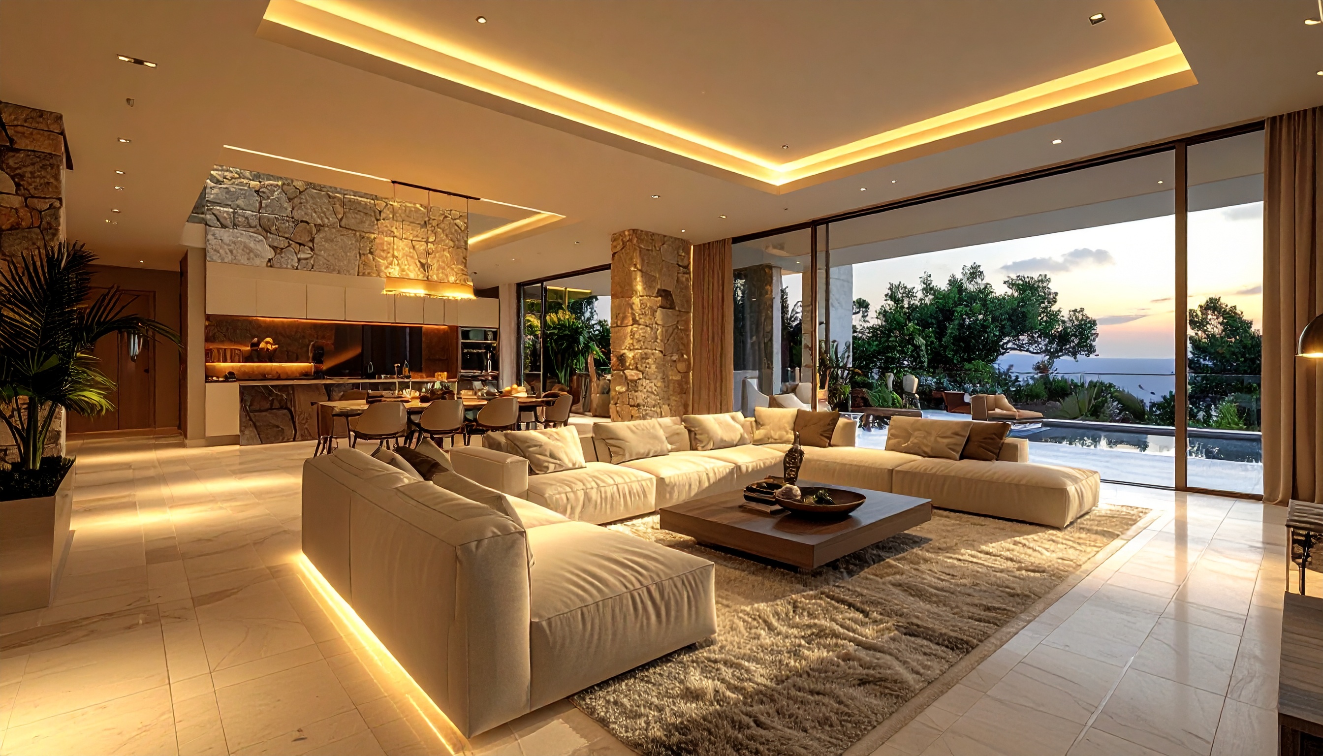 - Open-concept villa living layouts